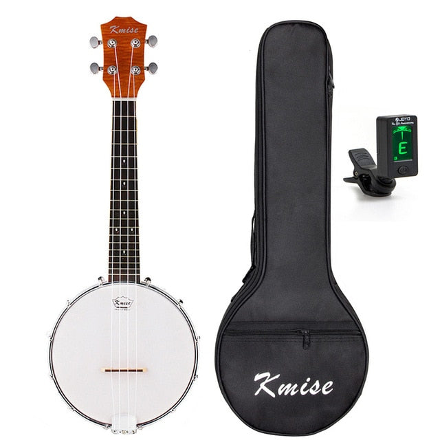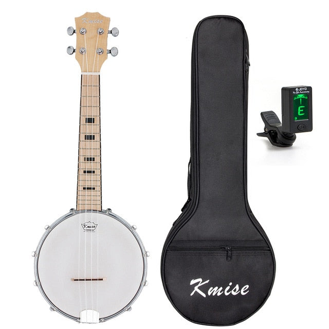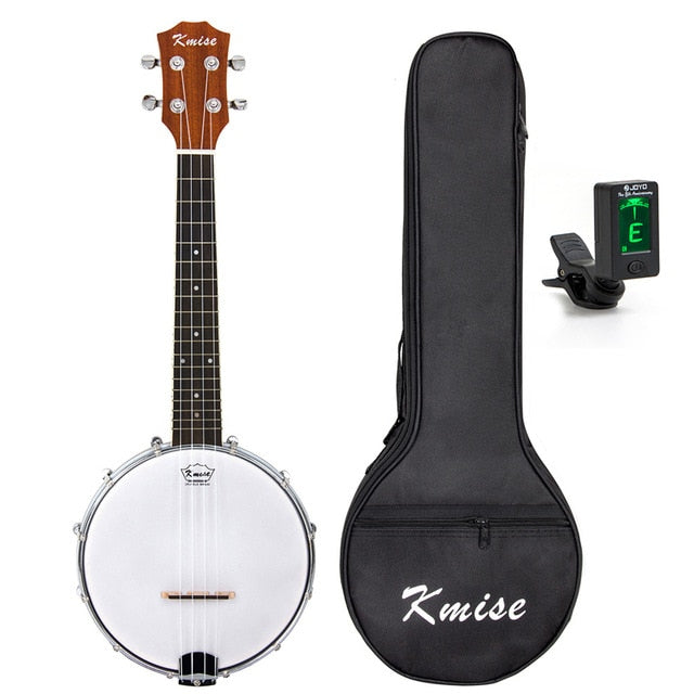 Kmise Ukulele Banjo Concert Ukelele 4 String Uke 23 inch Sapele Polyester Film Drumhead with Gig Bag Tuner